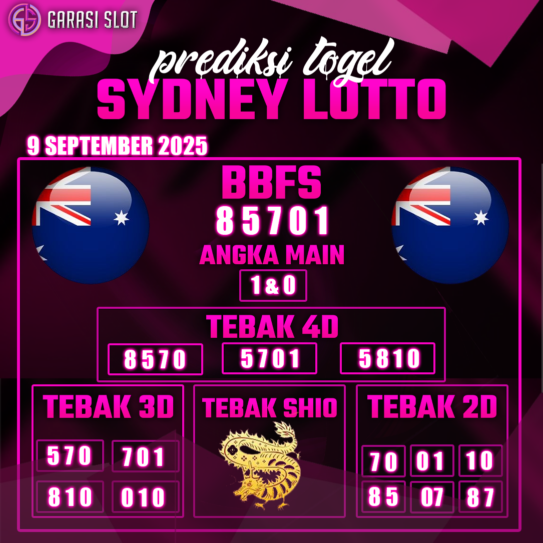 Togel SYDNEY adalah pasaran terlaris yang hampir tidak pernah tergantikan. Setiap harinya ribuan pengguna memburu dan mencari prediksi jitu seputaran togel Sydney hari ini. Nah, dibawah ini adalah prediksi togel Sydney Lotto 8 SEPTEMBER 2025 terbaik.