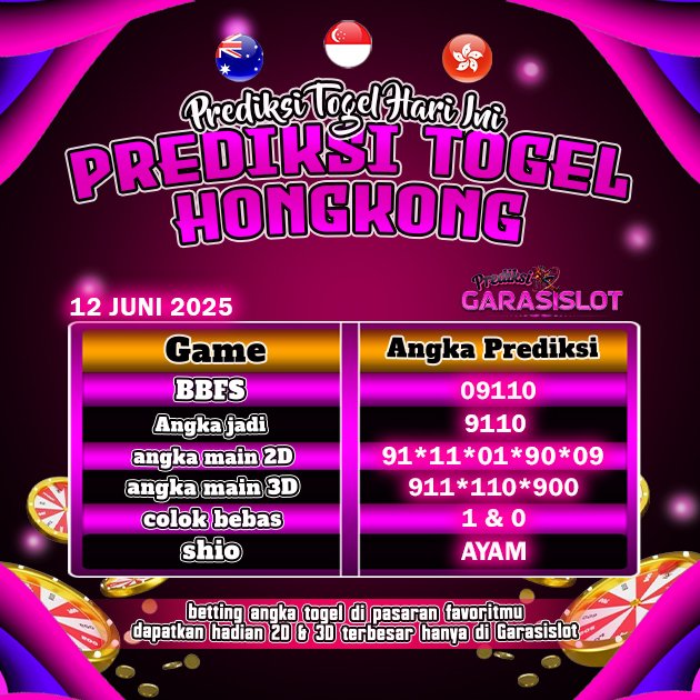 Prediksi togel Hongkong hari ini yang ditawarkan Prediksi GARASISLOT akan membantu Kamu dalam menyelesaikan catatan menyiapkan angka main. Prediksi GARASISLOT adalah halaman khusus untuk membocorkan angka prediksi seputaran pasaran togel terbesar di Indonesia. Hasil prediksi yang dirilis oleh tim khusus situs togel terpercaya GARASISLOT ini mempunyai tingkat akurat terbaik. Situs ini memungkinkan Kamu untuk mendapatkan informasi seputaran shio, buku mimpi, data keluaran terakhir serta menyaksikan live draw. Jadi cukup dalam satu website seluruh penikmat togel online dapat memperoleh informasi bermain. Prediksi Garasislot juga memiliki rekomendasi bandar togel terpercaya yang siap melayani dan membayar seluruh kemenangan hadiah jackpot.