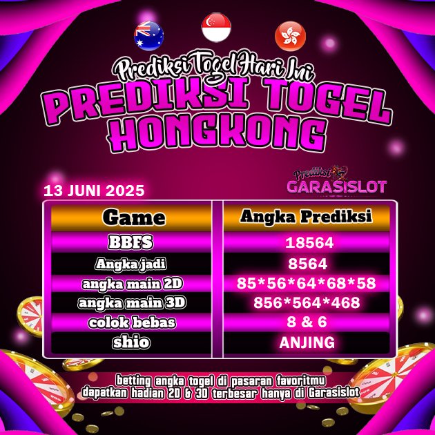 Togel Hongkong adalah pasaran terlaris yang hampir tidak pernah tergantikan. Setiap harinya ribuan pengguna memburu dan mencari prediksi jitu seputaran togel Hongkong hari ini.prediksi togel Hongkong lotto 13 JUNI 2025 terbaik.