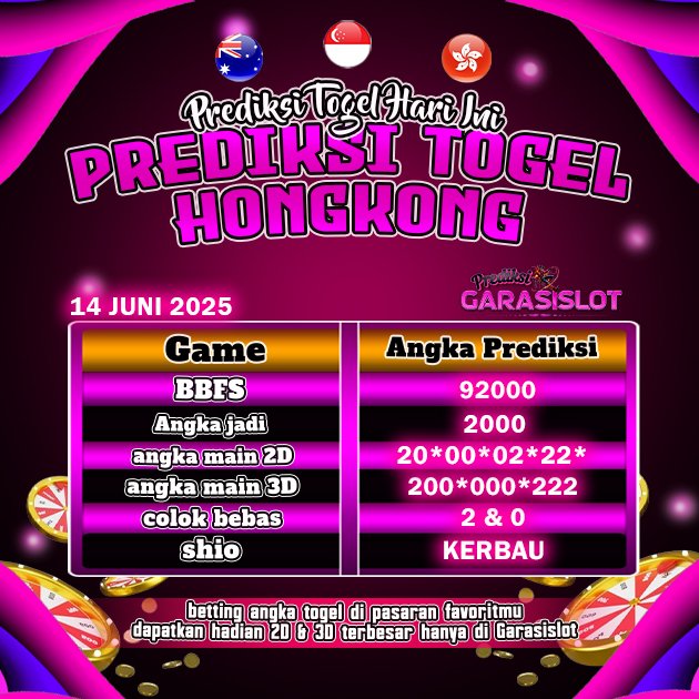 Prediksi togel Hongkong hari ini yang ditawarkan Prediksi GARASISLOT akan membantu Kamu dalam menyelesaikan catatan menyiapkan angka main. Prediksi GARASISLOT adalah halaman khusus untuk membocorkan angka prediksi seputaran pasaran togel terbesar di Indonesia. Hasil prediksi yang dirilis oleh tim khusus situs togel terpercaya GARASISLOT ini mempunyai tingkat akurat terbaik. Situs ini memungkinkan Kamu untuk mendapatkan informasi seputaran shio, buku mimpi, data keluaran terakhir serta menyaksikan live draw. Jadi cukup dalam satu website seluruh penikmat togel online dapat memperoleh informasi bermain. Prediksi Garasislot juga memiliki rekomendasi bandar togel terpercaya yang siap melayani dan membayar seluruh kemenangan hadiah jackpot.
