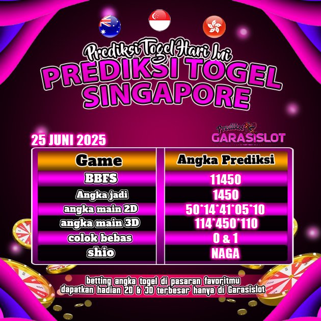 Togel SINGAPORE adalah pasaran terlaris yang hampir tidak pernah tergantikan. Setiap harinya ribuan pengguna memburu dan mencari prediksi jitu seputaran togel Singapore hari ini. Nah, dibawah ini adalah prediksi togel Singapore Pools 25 JUNI 2025 terbaik.