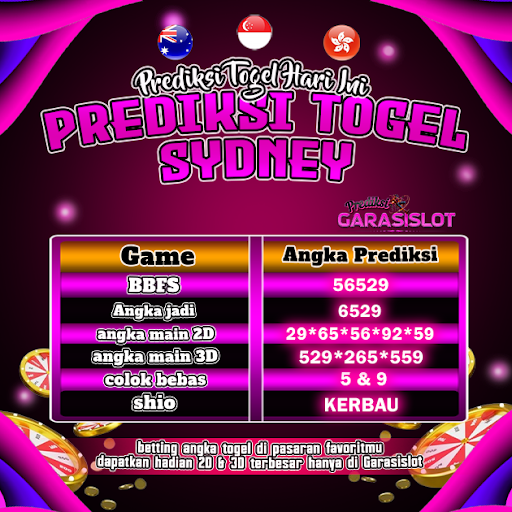 Prediksi togel Sydney hari ini yang ditawarkan Prediksi GARASISLOT akan membantu Kamu dalam menyelesaikan catatan menyiapkan angka main. Prediksi GARASISLOT adalah halaman khusus untuk membocorkan angka prediksi seputaran pasaran togel terbesar di Indonesia. Hasil prediksi yang dirilis oleh tim khusus situs togel terpercaya GARASISLOT ini mempunyai tingkat akurat terbaik.