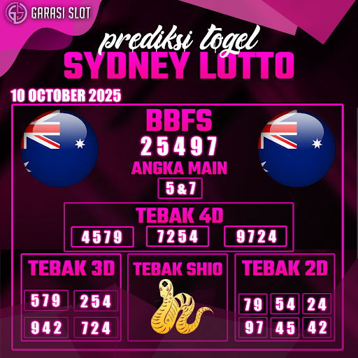 Togel SYDNEY adalah pasaran terlaris yang hampir tidak pernah tergantikan. Setiap harinya ribuan pengguna memburu dan mencari prediksi jitu seputaran togel Sydney hari ini. Nah, dibawah ini adalah prediksi togel Sydney Lotto 10 OCTOBER 2025 terbaik.