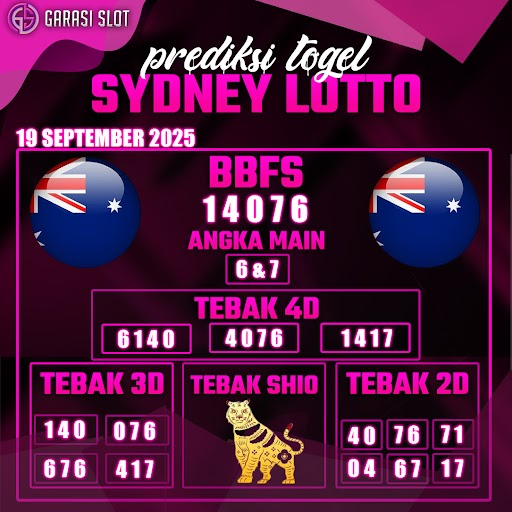 Togel SYDNEY adalah pasaran terlaris yang hampir tidak pernah tergantikan. Setiap harinya ribuan pengguna memburu dan mencari prediksi jitu seputaran togel Sydney hari ini. Nah, dibawah ini adalah prediksi togel Sydney Lotto 19 SEPTEMBER 2025 terbaik.