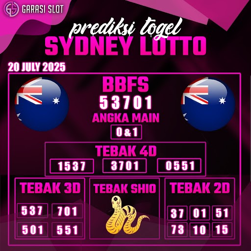 Togel SYDNEY adalah pasaran terlaris yang hampir tidak pernah tergantikan. Setiap harinya ribuan pengguna memburu dan mencari prediksi jitu seputaran togel Sydney hari ini. Nah, dibawah ini adalah prediksi togel Sydney Lotto 20 JULY 2025 terbaik.