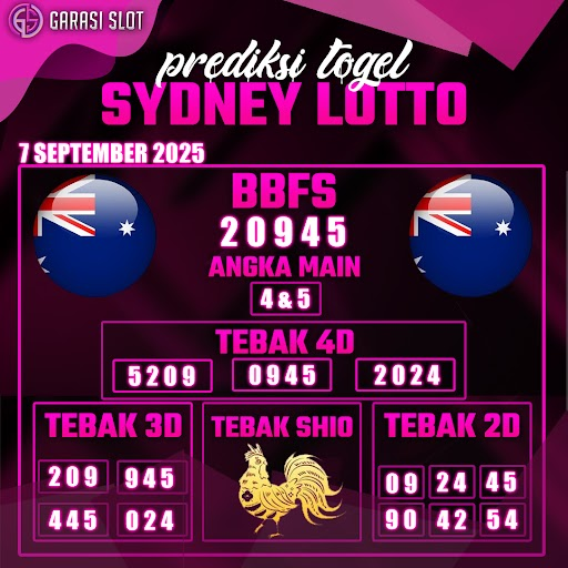 Prediksi togel Sydney hari ini yang ditawarkan GARASISLOT akan membantu Kamu dalam menyelesaikan catatan menyiapkan angka main. Prediksi GARASISLOT adalah halaman khusus untuk membocorkan angka prediksi seputaran pasaran togel terbesar di Indonesia. Hasil prediksi yang dirilis oleh tim khusus situs togel terpercaya GARASISLOT ini mempunyai tingkat akurat terbaik.